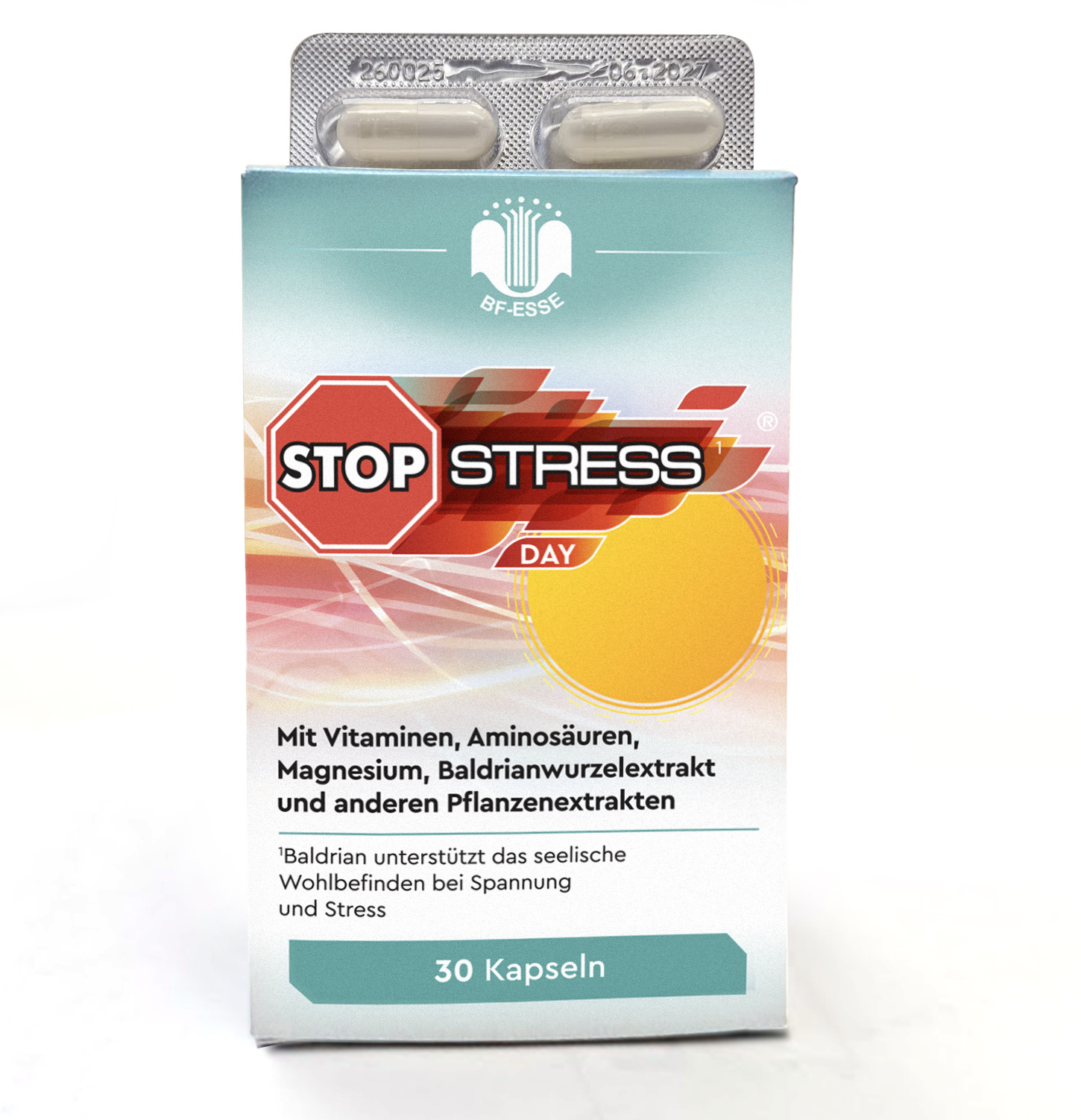 Bulking agent (microcrystalline cellulose), capsule shell: hydroxypropyl methylcellulose, magnesium oxide, passionflower blossom extract, peppermint leaf extract, L-glycine, L-tyrosine, vitamin C, niacin, anti-caking agent (magnesium salts of fatty acids), ginger root extract, hop blossom extract, valerian root extract, lemon balm extract, anti-caking agent (silicon dioxide), vitamin B1, vitamin B6, vitamin B2, folic acid.